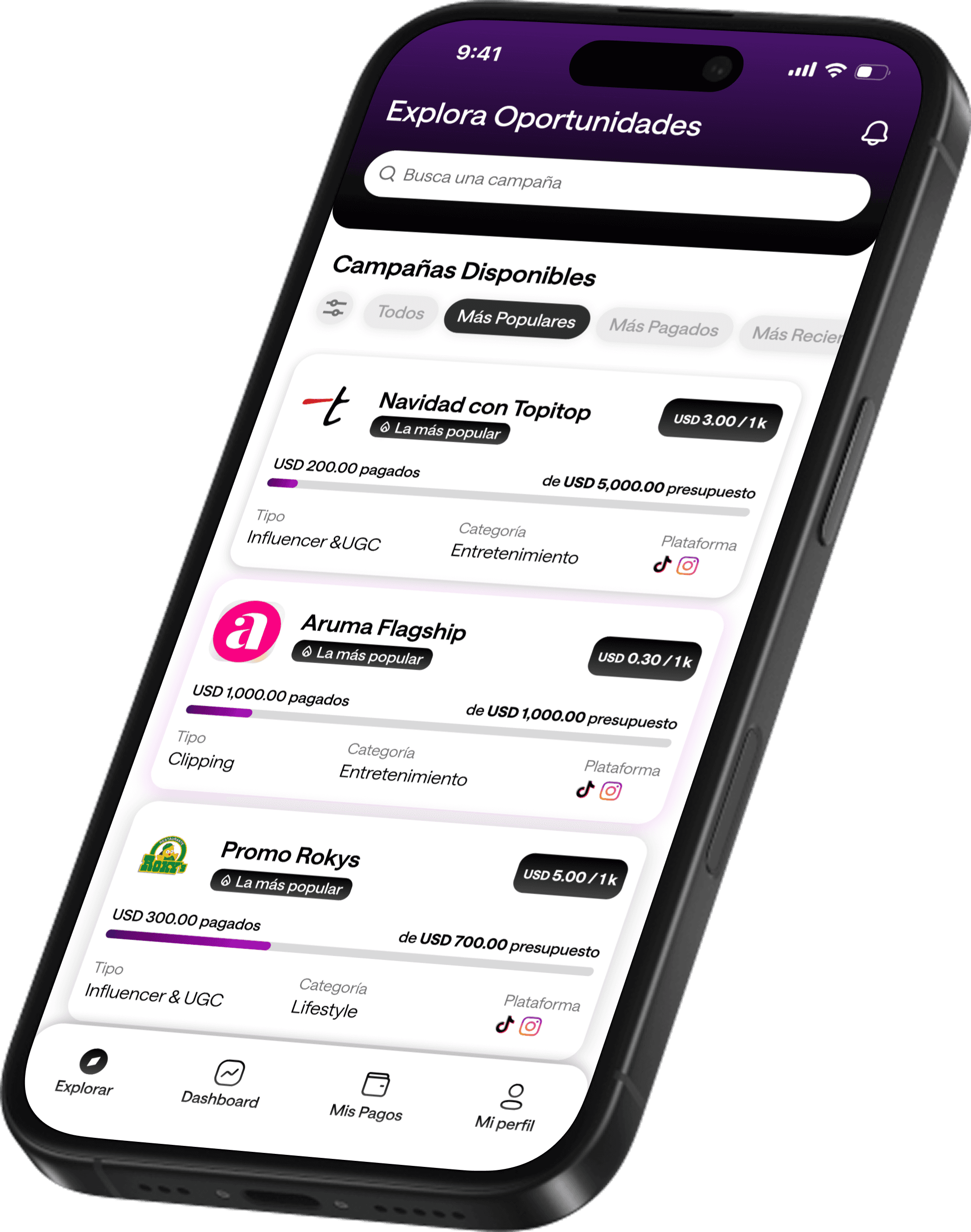 Descarga la app ahora y empieza a monetizar tu creatividad sin requisitos de seguidores, lo que importa es la calidad de tu contenido y los resultados que generes
