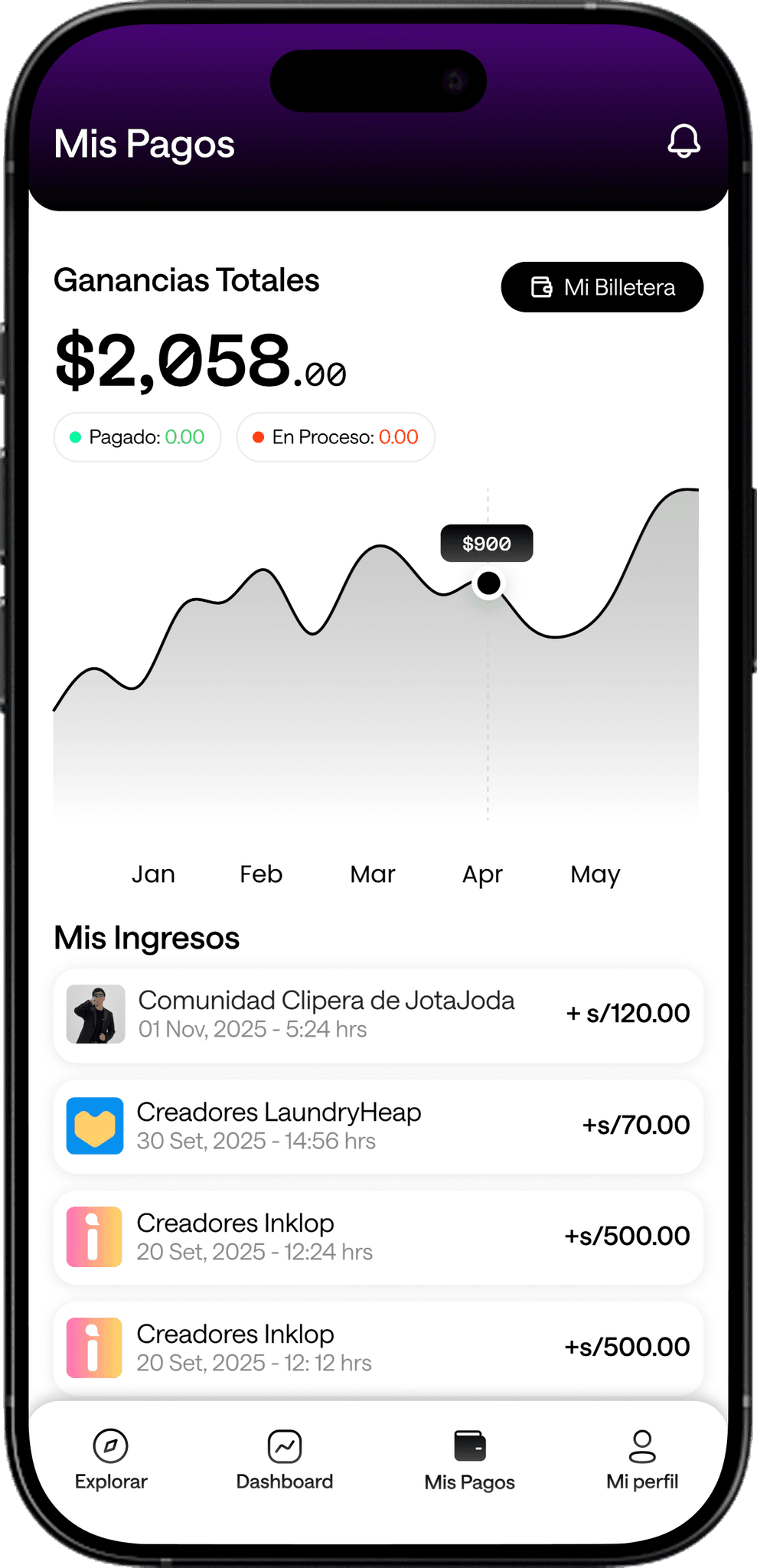 Todas tus ganancias se almacenan en tu wallet, lo que te permite retirarlo cuando quieras y el monto que quieras